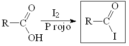Los ioduros de ácido se obtienen mediante la reacción del iodo y el fósforo rojo, que forman in situ trioduro de fósforo, con un ácido carboxílico.