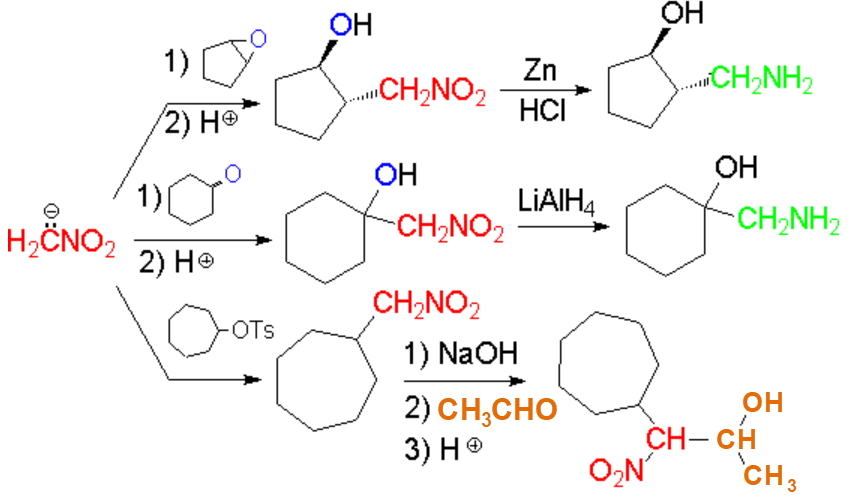 Incluso, una vez que el nitroalcano ha reaccionado, puede hacersele reaccionar otra vez, si le quedan hidrógenos en alfa.