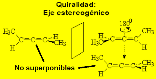 Aunque los alenos no poseen ningún estereocentro, los que tienen dos sutituyentes distintos en los extremos tienen un eje quiral que ocasiona que objeto e imagen no sean superponibles.
