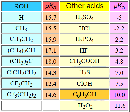 ACID - BASE PROPERTIES OF ALCOHOLS