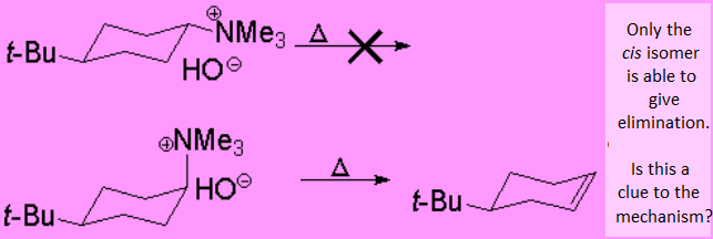 The preferred conformer of the cis isomer does not have any hydrogens in anti arrangement relative to the NMe3 group. That's why it doesn't react, because the mechanism is E2.